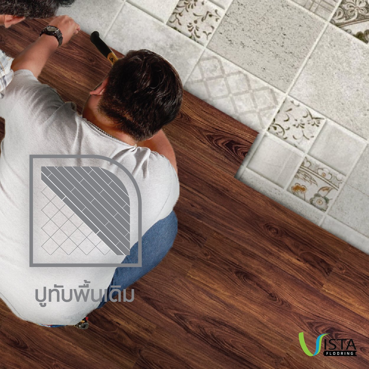 4. ปูทับพื้นเดิมได้ (Click Lock System) ด้วยเทคโนโยลีใหม่ล่าสุดจากยุโรป ทำให้การติดตั้งไม่ต้องใช้กาว สามารถปูทับพื้นเดิม*ได้ โดยไม่ต้องรื้อ